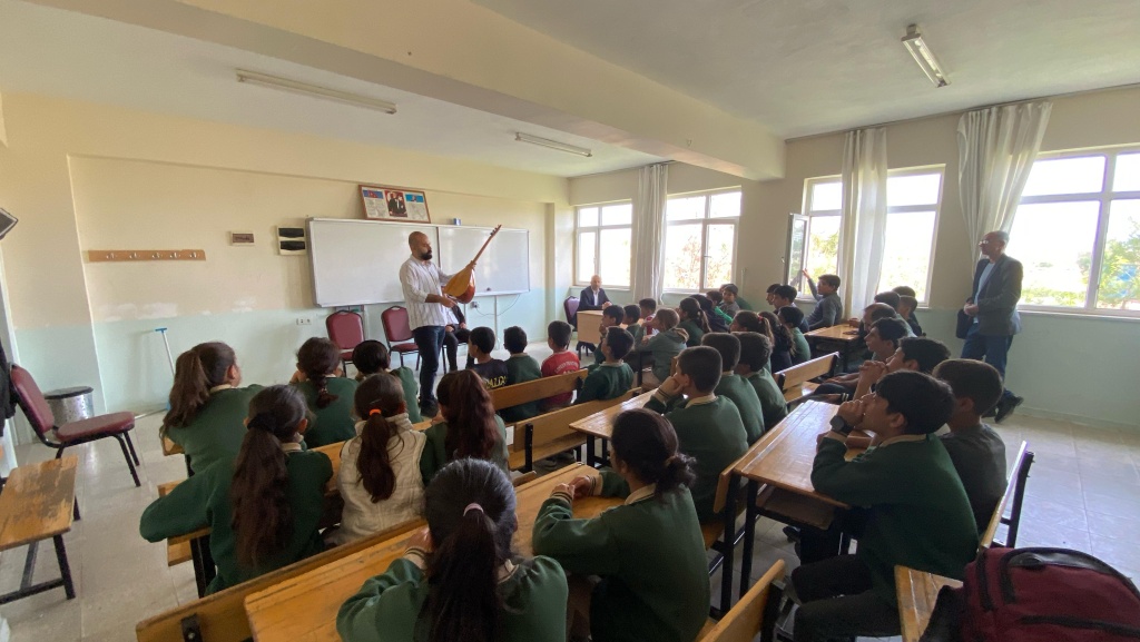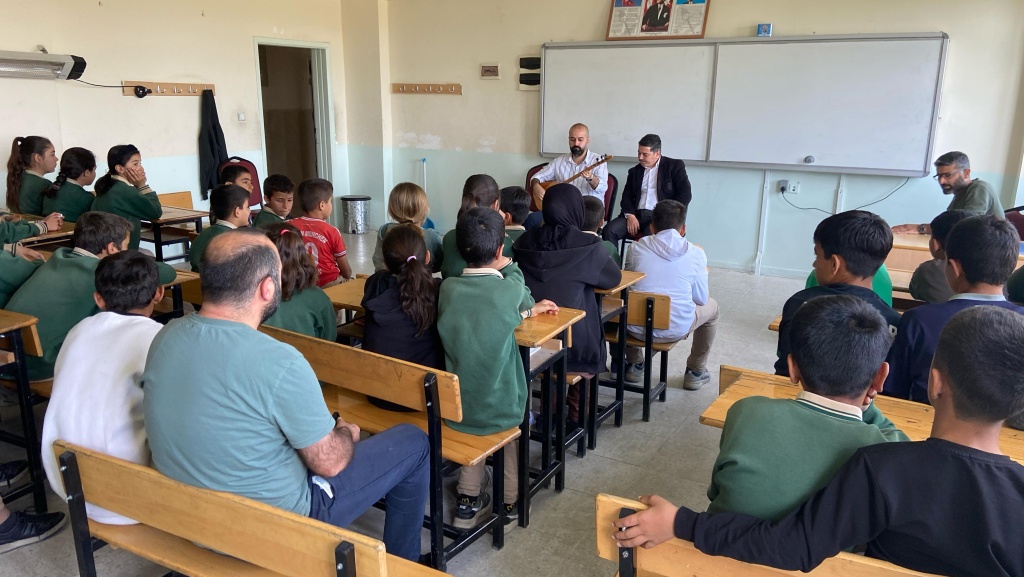 Bozova Halk Eğitim Müdürü Fehmi Çalışkan ve Müdür Yardımcısı Mahmut Esat Akagün 23 Nisan ETkinlikleri kapsamında okulumuza ziyarette bulundular.Esat Hocamız ve Müslüm Can öğrencilerimize türkü ve ilahi konseri verdiler.